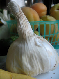 Green cabbage - hopefully you will stay fresh and ready for some coleslaw action this weekend. Plus garlic.